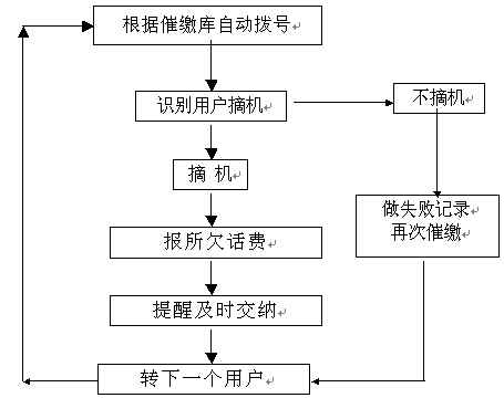 。。綜合語(yǔ)音通知系統(tǒng)可與10000話費(fèi)查詢(xún)系統(tǒng)結(jié)合使用。當(dāng)用戶(hù)得知需要繳納話費(fèi)時(shí),可撥打10000查詢(xún)熱線,聽(tīng)到問(wèn)候語(yǔ)后輸入電話號(hào)碼,10000系統(tǒng)即可自動(dòng)播放用戶(hù)查詢(xún)?cè)路莸脑捹M(fèi)發(fā)生情況。催費(fèi)由指定的欠費(fèi)數(shù)據(jù)文件(或欠費(fèi)數(shù)據(jù)庫(kù))中提取用戶(hù)電話號(hào)碼和欠費(fèi)金額,自動(dòng)順序向各欠費(fèi)用戶(hù)撥號(hào),撥通后自動(dòng)播放催費(fèi)通知并通報(bào)欠費(fèi)金額數(shù)。系統(tǒng)自動(dòng)統(tǒng)計(jì)通話結(jié)果,系統(tǒng)對(duì)未應(yīng)答用戶(hù)會(huì)自動(dòng)重復(fù)多次撥叫。
