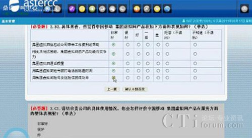 astercc的CATI問(wèn)卷系統(tǒng)將問(wèn)題自動(dòng)彈出在坐席人員的電腦屏幕前,坐席按照系統(tǒng)提示逐步操作即可,無(wú)需復(fù)雜的專(zhuān)業(yè)知識(shí),按照系統(tǒng)彈出的資料傳達(dá)給客戶(hù),供客戶(hù)進(jìn)行勾選。(坐席可以利用Tab鍵來(lái)自動(dòng)切換下一題,方便坐席操作,節(jié)省時(shí)間)