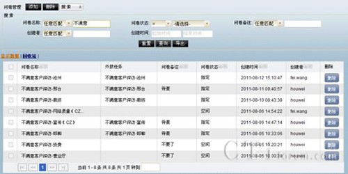 例如在搜索框內(nèi)客戶(hù)名稱(chēng)中輸入“不滿(mǎn)意”,那么問(wèn)卷名稱(chēng)只要包含“不滿(mǎn)意”的問(wèn)卷都會(huì)出現(xiàn)在問(wèn)卷列表里。