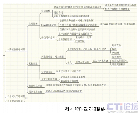 在給某移動運營商進行的接通率優(yōu)化咨詢項目中,利用呼叫中心接通率優(yōu)化模型進行了分析,下面(圖4)是針對分流呼叫中心總體呼叫量所提出的建議措施。