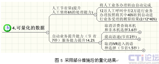 從圖5的分析中可以看出,如果人工服務(wù)采取1項措施,自動業(yè)務(wù)采取3項措施即可以得出如下的量化結(jié)果: