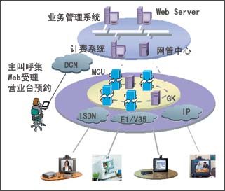 運(yùn)營支撐層與視訊交換層可以兼容各個(gè)視訊終端生產(chǎn)廠家提供的滿足標(biāo)準(zhǔn)的終端,在視訊實(shí)現(xiàn)層為電信運(yùn)營商的客戶提供多種方便的預(yù)約手段,并推出“主叫呼集”功能,使用戶能夠方便地自主召集各種視訊業(yè)務(wù)。“一卡多號”方便用戶付費(fèi)、使用;全面的級連MCU主席控制能力使用戶能靈活操縱視訊業(yè)務(wù)的進(jìn)行!爸鹘泻艏、“一卡多號”等功能的提供,使復(fù)雜的視訊業(yè)務(wù)真正成為電信運(yùn)營商滿足大客戶、適應(yīng)電信市場發(fā)展的“傻瓜化”業(yè)務(wù)。
