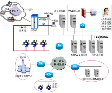 針對(duì)政府目前熱線電話眾多,管理不規(guī)范,資源無法共享的問題,華為公司提出的基于資源整合理念的解決方案,采用華為公司呼叫中心技術(shù)構(gòu)建完整的計(jì)算機(jī)電信集成(CTI)系統(tǒng)體系,并充分利用政府現(xiàn)有的信息網(wǎng)絡(luò)資源,一方面整合原有分散的熱線,啟用12345政府熱線號(hào)碼統(tǒng)一接入;另一方面將自動(dòng)語(yǔ)音查詢、人工服務(wù)、信息資料處理緊密結(jié)合起來,依托地方政府各類業(yè)務(wù)技術(shù)支持系統(tǒng)和網(wǎng)絡(luò)系統(tǒng),建立一套通暢的來電業(yè)務(wù)公文流轉(zhuǎn)系統(tǒng),通過人工受理或自動(dòng)語(yǔ)音服務(wù)等方式,為人民群眾提供全天候24小時(shí)不間斷的服務(wù)。最終整合現(xiàn)有的全部政府部門政府熱線資源,使政府政府熱線服務(wù)范圍覆蓋到政府公共服務(wù)的全部領(lǐng)域,為市民提供全方位、全天候、高效率的政府政府熱線服務(wù),市民只記一個(gè)電話號(hào)碼,只打一次電話,就能得到政府答復(fù)和服務(wù)。