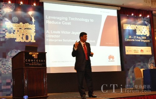 CTI論壇(ctiforum)9月14日消息:2009年08月26日~27日,華為公司作為金牌贊助商,以”Leveraging Technology to Reduce Cost”為主題,參加在新加坡Concorde Hotel舉辦的CCAS Symposium 2009,獲得圓滿成功。