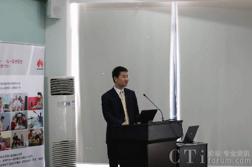 圖:華為軟件UC市場(chǎng)技術(shù)經(jīng)理穆立昌分享華為統(tǒng)一通信解決方案
