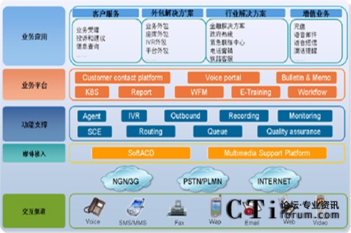 華為多媒體聯(lián)絡中心解決方案標準版采用的是基于華為NGN架構(gòu)的下一代多媒體接入設(shè)備UAP3300,寬窄帶一體化設(shè)計,可接入PSTN/PLMN、NGN/3G網(wǎng)絡,符合長期演進要求。單臺可支持240座席,在6U的高度內(nèi)內(nèi)置寬窄帶中繼接入和錄音、放音、傳真等媒體資源處理能力,無需外置媒體服務器和中繼網(wǎng)關(guān),并支持TTS和ASR功能。