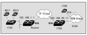 在該案例中,異地之間通過兩臺(tái)DCR 1750互連,并提供語音模塊,可直接接電話機(jī),使得異地之間可以通過IP網(wǎng)絡(luò)撥打IP語音電話。