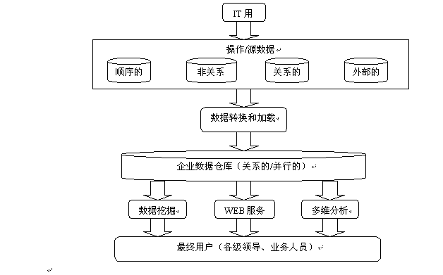 數(shù)據(jù)倉庫是信息技術(shù)領(lǐng)域的新概念,是近幾年來迅速發(fā)展起來的一種信息存儲(chǔ)及管理技術(shù)。它存儲(chǔ)各種大量的、決策分析所需要的、歷史的、分散的數(shù)據(jù),經(jīng)過處理將這些數(shù)據(jù)轉(zhuǎn)換成集中統(tǒng)一、隨時(shí)可用的信息。它能方便地提供隨機(jī)查詢和各種分析處理,它具有在任何時(shí)間、就任何業(yè)務(wù)、回答任何問題的能力;利用數(shù)據(jù)倉庫前端的數(shù)據(jù)挖掘工具和人工智能算法建立各種調(diào)查、分析和預(yù)測(cè)模型。