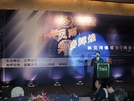 2004年6月10日,林克海德公司在昆侖飯店迎來了十年華誕,林克海德的新朋老友歡聚一堂,齊唱同一首歌。美國NMS總裁Bob,太平洋網絡總裁Tony都遠程趕來祝賀。在過去的十年中,林克海德見證了中國電信增值業(yè)務領域從無到有、從簡單的語音信箱到目前斑斕多彩的彩信業(yè)務的發(fā)展歷程,被譽為國內板卡市場的旗艦。現在隨著中國通信領域電信增值業(yè)務的發(fā)展,林克海德憑借語音增值業(yè)務方面的豐富經驗,成為業(yè)內知名的語音、傳真、數據等多媒體業(yè)務開發(fā)平臺的提供商和系統方案服務商,林克海德公司走進了新的語音時代!