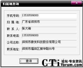 在A8電腦傳真機(jī)的電話(huà)商務(wù)通主界面,點(diǎn)擊歸屬地按鈕,出現(xiàn)手機(jī)歸屬地查詢(xún)界面,輸入手機(jī)號(hào)碼,點(diǎn)擊查詢(xún),界面上會(huì)顯示出該手機(jī)的歸屬地,如果此號(hào)碼已在電話(huà)簿中,則界面上會(huì)同時(shí)顯示該電話(huà)對(duì)應(yīng)的聯(lián)系人信息。