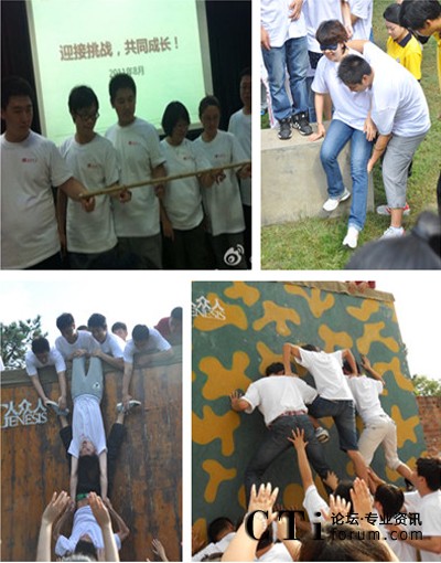CTI論壇(ctiforum)10月12日消息(記者 張潔):為了進(jìn)一步推動(dòng)企業(yè)和員工的共同發(fā)展,增強(qiáng)團(tuán)隊(duì)的協(xié)作能力和責(zé)任意識(shí),易才博普奧于2011年8月18日至8月19日于房山青龍湖人眾人拓展訓(xùn)練基地組織開展了主題為“破冰之旅”的戶外團(tuán)隊(duì)拓展活動(dòng)。這次活動(dòng)集結(jié)了來自易才博普奧呼叫中心事業(yè)部、公共服務(wù)部、整合行銷事業(yè)部、項(xiàng)目部等七個(gè)部門的120多名員工。在短短的兩天培訓(xùn)時(shí)間里,各部門領(lǐng)導(dǎo)員工融入到一起參與到各項(xiàng)活動(dòng)中,受益匪淺,感慨良多。