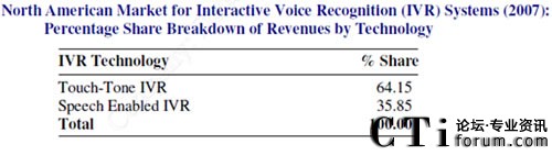 CTI論壇(ctiforum)11月3日消息(記者 楊佳林):根據Global Industry Analysts, Inc. 2010研究報告指出, 語音識別每兩年的復合成長率(CAGR)為97.7%, 其中美, 加占65%。以2007年的IVR銷售營業(yè)額而言, 具有語音識別功能的IVR系統已占有的1/3的比例, 顯示出語音識別系統已逐漸取代瀪復的IVR系統,提供一步到位的服務。