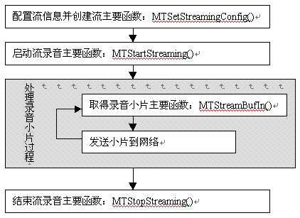 流式錄音的實(shí)現(xiàn)過程包括配置流信息并創(chuàng)建流、啟動流錄音、處理錄音小片及結(jié)束流錄音四個步驟,如下圖: