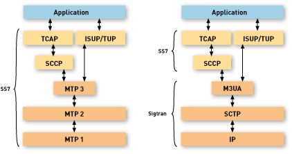 SIGTRAN為SS7信令提供可靠IP網(wǎng)絡(luò)傳輸,是新型服務(wù)平臺(tái)向VoIP(voice over)模式發(fā)展的關(guān)鍵。SIGTRAN以通用IP網(wǎng)路連接替代基于T1/E1的SS7網(wǎng)絡(luò),降低了系統(tǒng)實(shí)施成本。寬帶IP連接的采用還幫助解決了原來SS7網(wǎng)絡(luò)的容量限制問題。