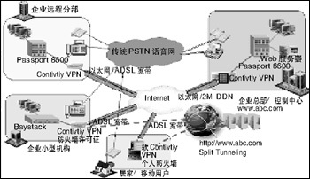 2700/1700)同樣獲得固定的合法IP地址,這樣兩點間可以方便地通過IPSEC VPN建立起安全隧道,有的小型分支機(jī)構(gòu)可能租用ADSL/xDSL鏈路,此時Contivity(Contivity