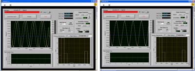 當兩個(或多個)設備一起工作并對時間有精確要求的時候,就需要在它們之間進行同步。同步是基于在兩個設備之間規(guī)定一個共同的時間參考,試想如果將不同音軌的音頻訊號分別錄在不同的磁帶機上,則必須將這兩個磁帶機的磁帶傳送軸鎖定在一起,否則將來撥放出來就會有相位上的誤差,這個過程就稱為同步。假使這兩個設備沒有進行同步,無論它們開始的時間多么一致,也會由于兩臺設備在機械結構的差異而產生時間漂移。同樣的,對于數據采集卡也是一樣的概念,甚至在要求上更為嚴格。而如何達到數據同步采集,最基本的要求就是不同模塊間要有相同的工作時脈與一致的觸發(fā)信號,而這個相同的時脈信號需來自于共同的外部儀器。下圖中的弦波是兩張數據采集卡在同步與異步采集同一信號源所得的波形,在左圖中因異步而存在一向位差,右圖中則是同步觸發(fā)下得到完全重迭的波形。