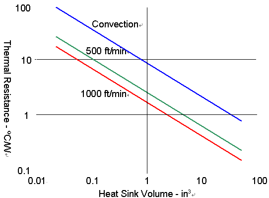 從圖上可以看出散熱片的散熱能力并不和風速成一線性函數(shù),在熱阻上一個非常顯著的改善,會在稍呈對流狀態(tài)的空氣與每分鐘500英尺的風速情況下顯現(xiàn)出來,但是從每分鐘500英尺增加到每分鐘1000英尺的風速時,熱阻的改善就沒那么顯著了。另一個用吹風方式的限制因素是噪音,當吹過卡板與散熱片的風速增加時,所產(chǎn)生的噪音也會增加。從實務面來看,大部分的CompactPCI機箱提供每分鐘300英尺的風速,如先前提到的,散熱片通常會被內(nèi)存以及PMC的空間給限制了大小,一個CompactPCI卡板若含有兩個PMC的設計,通常會有一個處理器散熱片的大小約為3 inch x 4.5 inch x 0.7 inch或9.45立方英吋, ,這樣通常約在每分鐘300英尺的風速下有0.62°C/W的熱阻,大部分的處理器在最熱的例子下會到70°C,在一個嵌入式的應用中,周邊的最高溫很容易就達到50°C,透過這些信息,當遇到限制時,一顆微處理器所能產(chǎn)生出來的熱量可透過下列的公式計算而得:最高溫度=熱阻 x 功率 + 周邊溫度(最高溫度-周邊溫度)/ 熱阻= 功率 (70-50)/0.62= 32Watt。