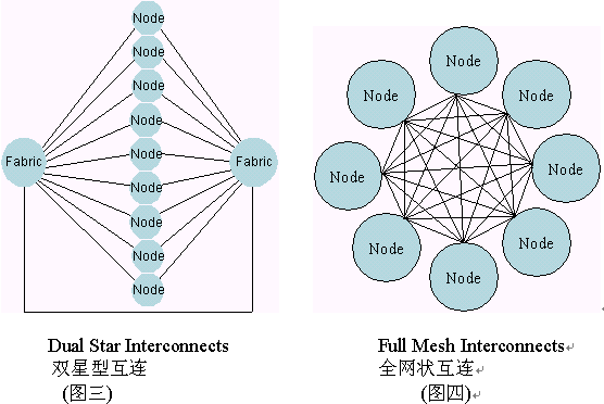 交換接口是ATCA機框中的主要數據傳輸接口。ATCA協議在每個板子上定義了多達15個通訊通路。這些通訊通路可以被配置成全網狀拓撲結構或雙星型拓撲結構。在雙星拓撲結構中每塊板同兩個不同的交換板都有通路。交換板在機框中扮演交換核心的角色。在全網狀拓撲結構中,每一個單板與其它任意單板都保持一個鏈接通路。下圖描繪了雙星型和全網狀結構中的內部互鏈的配置。