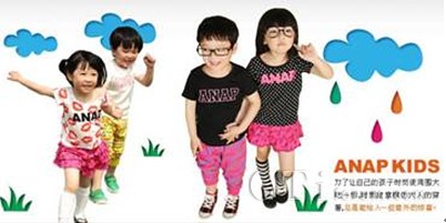 除了衣服質(zhì)感舒適,ANAP KIDS以款式流行、設(shè)計CUTE的市場定位也贏得 不少青睞者的追捧。更有小物件、配飾等多類商品,滿足了喜歡時尚、裝扮的母親們想讓自己孩子穿得和其他人與眾不同衣服的需求。繼承了ANAP傳統(tǒng)的ANAP KIDS是一個非常“奔放”、“充滿活力”的品牌,致力于協(xié)助父母給予最可愛的他(她)最安全、最舒適的呵護(hù),將潮流、關(guān)愛、成長的生活觀念傳遞到每個家庭,讓所有3-6歲兒童共享同一份快樂。