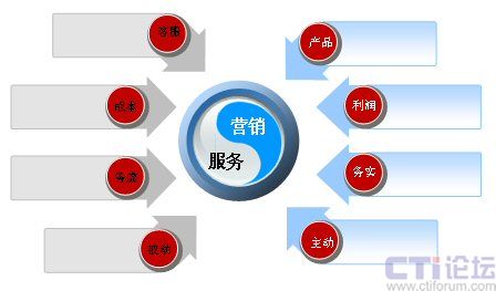 首先看一下服務(wù)營(yíng)銷的理念,有必要來溫故一下。在傳統(tǒng)的制造業(yè)中,即在工業(yè)經(jīng)濟(jì)的模式下,服務(wù)和營(yíng)銷是截然分割的,一般大家都認(rèn)為,營(yíng)銷在前,服務(wù)在后。服務(wù)有幾大特性,比如在購(gòu)買了產(chǎn)品后才會(huì)有相關(guān)的服務(wù),服務(wù)是無形的商品,企業(yè)建立的是售后服務(wù)體系。另外,大家都認(rèn)為服務(wù)沒有辦法進(jìn)行標(biāo)準(zhǔn)化,從這個(gè)角度說,大家一看到服務(wù),就會(huì)聯(lián)想:客服、成本、務(wù)虛、被動(dòng)等詞匯。服務(wù)體現(xiàn)的是一種理念,所以大家認(rèn)為比較虛。說到服務(wù)是被動(dòng)的,實(shí)際是與營(yíng)銷相比,營(yíng)銷是比較主動(dòng)的。拿呼叫中心來說,客服人員坐在座位上,等待著客戶打來電話,而不能對(duì)電話進(jìn)行預(yù)測(cè),下一個(gè)小時(shí)會(huì)有多少呼入電話產(chǎn)生、投訴的內(nèi)容會(huì)有哪些、咨詢業(yè)務(wù)量會(huì)有多大,這些誰也不能進(jìn)行準(zhǔn)確預(yù)測(cè),所以說服務(wù)相對(duì)比較的被動(dòng)。再說營(yíng)銷,大家談營(yíng)銷時(shí),能想到的詞匯有:產(chǎn)品、利潤(rùn)、務(wù)實(shí)、主動(dòng)。因?yàn)闋I(yíng)銷是與產(chǎn)品掛鉤,營(yíng)銷又可以賺取利潤(rùn)。另外,之所以說營(yíng)銷是務(wù)實(shí)的,因?yàn)闋I(yíng)銷是有指標(biāo)的,每個(gè)月要進(jìn)行考核。同樣如果從呼叫中心的角度談電銷,它是一種主動(dòng)式的外呼。