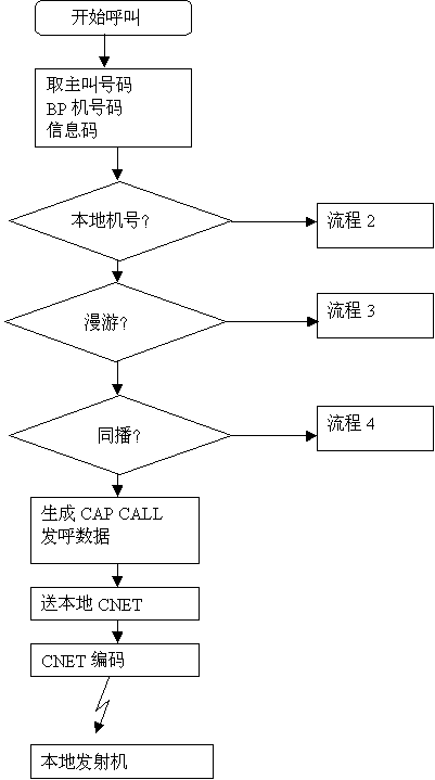 本地呼叫漫游到異地的本地機時, 自動臺通過PCM數(shù)字中繼, 從MFC信號中取到BP機號及主叫電話號碼, 或從用戶DTMF撥號中得到信息碼,形成發(fā)呼串送到發(fā)呼工作站,由發(fā)呼工作站形成CAP CALL 發(fā)呼串,發(fā)到漫游地自動臺,后面的呼叫過程就由漫游地自動臺來完成。