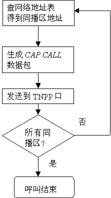 本地呼叫登記了同播功能的本地機時, 自動臺通過PCM數(shù)字中繼, 從MFC信號中取到BP機號及主叫電話號碼, 或從用戶DTMF撥號中得到信息碼,形成發(fā)呼串送到發(fā)呼工作站,由發(fā)呼工作站根據(jù)同播區(qū)號,往所有的自動臺發(fā)CAP CALL,后面的呼叫過程就由同播地自動臺來完成。同播區(qū)可以為包括本地區(qū)的多個區(qū)。下圖中TNPP口可以為本地TNPP端口或聯(lián)網(wǎng)TNPP端口。