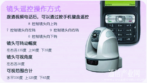 前端攝像頭可以上下左右靈活轉(zhuǎn)動(dòng),隨意安放在家中、商鋪中的合適位置。用戶的手機(jī)無需安裝客戶端軟件,即可通過視頻電話直接呼叫前端攝像頭,然后通過12個(gè)數(shù)字鍵控制前端云臺(tái)轉(zhuǎn)動(dòng)、變焦、錄像、回放等操作。