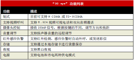 “3Geye”業(yè)務(wù)是由上海貝爾股份有限公司開發(fā)的一個(gè)針對家庭及小型商品市場的視頻監(jiān)控類業(yè)務(wù),它利用3G中獨(dú)有的64K視頻電路域,建立起用戶與前端攝像頭的視頻電話,從而達(dá)到視頻監(jiān)控的目的。