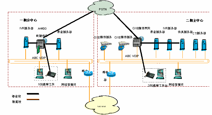 基礎語音系統(tǒng)采用阿爾卡特OmniPCX Enterprise語音通信平臺,它采用分布式的語音體系架構,完全融合IP技術,并可集成傳統(tǒng)的TDM語音。OmniPCX Enterprise提供開放的標準和靈活的擴展能力,并提供99.999%的高可靠性。讓用戶靈活的配置其座席的地理位置和通信方式,并保證系統(tǒng)運行安全可靠。OmniPCX Enterprise交換機(二期)計劃采用Appliance Server呼叫服務器雙備份結構,提供RSI接口與GENESYS相連,以及并線錄音系統(tǒng)接口。今后,項目還將采用先進的阿爾卡特-My Phone IP WEB軟電話,提高內部通信能力,優(yōu)化業(yè)務流程。