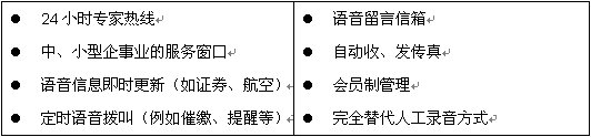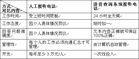 將以往的單位的人工熱線電話轉(zhuǎn)換為計(jì)算機(jī)24小時(shí)自動(dòng)熱線。有效解決服務(wù)態(tài)度、服務(wù)質(zhì)量等敏感問題。咨詢來電只須象以往撥打熱線電話,計(jì)算機(jī)中的語音卡就會(huì)自動(dòng)接通,完成95%以上的人工服務(wù)任務(wù),用戶就可以通過電話這種最簡(jiǎn)單、最易用的方式快速獲取信息。