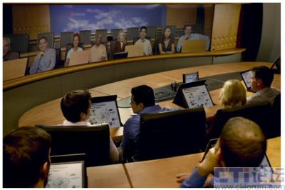 我們之前提到的遠(yuǎn)程呈現(xiàn)產(chǎn)品中前四種都屬于“面對(duì)面”系列。其會(huì)議室布局簡(jiǎn)潔,會(huì)議桌的一側(cè)是座椅,另一側(cè)是等離子顯示屏;會(huì)議連通后,屏幕中將出現(xiàn)近乎真人比例的遠(yuǎn)程與會(huì)者,每個(gè)顯示屏可容納兩個(gè)人,而且屏幕為每個(gè)人都預(yù)留了足夠的活動(dòng)空間,來施展肢體語言。但是,如果你習(xí)慣開會(huì)時(shí)使用白板,并站在旁邊邊寫邊講,那么就需要您在“面對(duì)面”會(huì)議中克服一下了,因?yàn)橐坏┠鷱淖簧险酒饋,在?duì)方眼中您將面臨“切頭”的惡果,當(dāng)然遠(yuǎn)程呈現(xiàn)中的雙流功能,可以讓與會(huì)雙方輕松實(shí)現(xiàn)內(nèi)容共享,白板是根本用不上的。