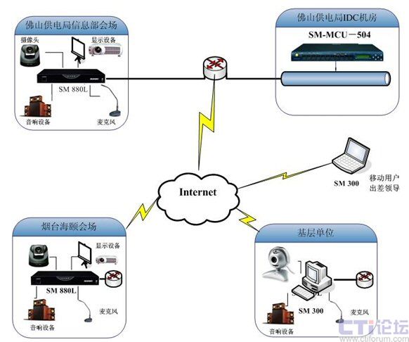 MCU 504,主要放置于電力局總部,在4個會議配備硬件終端使用SM 880L,另外桌面軟件終端使用SM 300。