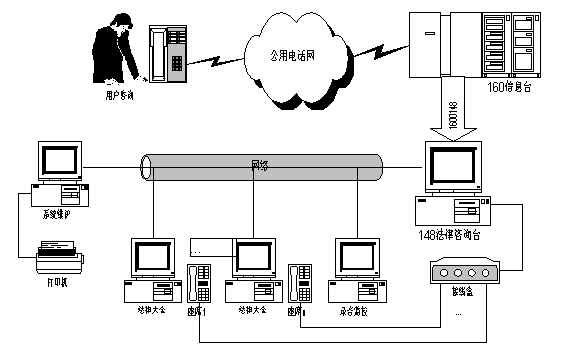 本系統(tǒng)基于WINDOWS95/98/NT操作系統(tǒng),操作簡(jiǎn)易、配置靈活、安全可靠,是建立148法律咨詢電話服務(wù)系統(tǒng)的最佳選擇。