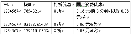 根據主叫用戶和被叫用戶之間的關系,對主叫用戶的通話費進行優(yōu)惠處理。例4,親情號碼優(yōu)惠。用戶申請該業(yè)務后,可指定若干被叫號碼,對該用戶呼叫這些號碼的話單費用打折或按固定優(yōu)惠資費進行處理。