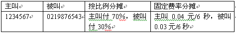根據主叫用戶和被叫用戶之間的的關系,主叫用戶產生的通話費由主叫和被叫協(xié)商好的原則共同承擔。例6。