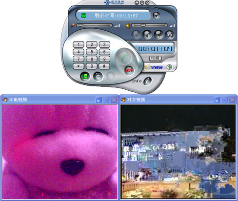 在1M中國電信ADSL的網絡接入之下,如果網絡還在應付下載等占用網絡帶寬的操作時,“寶視通”的可視效果會出現(xiàn)“馬賽克”現(xiàn)象,顯示速度并不理想,但慶幸的是語音速度并沒有受到多大的影像,通話雙方依然能清楚聽到對方的音頻。