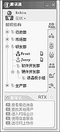 與其他應(yīng)用程序集成是EIM的發(fā)展趨勢(shì),也是企業(yè)現(xiàn)代辦公的一大需求。目前,騰訊通RTX已成功與國(guó)內(nèi)著名的金碟、用友、北京慧點(diǎn)等軟件廠商開(kāi)展合作,使騰訊通RTX的整體功能進(jìn)一步提升,極大地方便了企業(yè)應(yīng)用。比如通過(guò)與金碟OA的集成,實(shí)現(xiàn)了企業(yè)級(jí)實(shí)時(shí)通信平臺(tái)與企業(yè)管理軟件和信息化解決方案的緊密結(jié)合,從而更好地滿足客戶需求。通過(guò)與用友ERP集成,降低了企業(yè)通信時(shí)間和費(fèi)用,提高了工作效率。