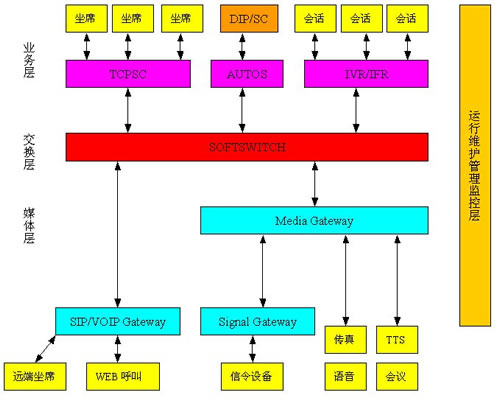 2003 Server操作系統(tǒng)上的平臺軟件實現(xiàn)CallCenter所需的功能:ACD,CTI,IVR。CT Ways與傳統(tǒng)CallCenter平臺的在軟件方面的最大區(qū)別是平臺軟件運行在網格計算環(huán)境下,TCP/IP作為網絡通信協(xié)議。在硬件方面的區(qū)別是IVR硬件資源可與信令及交換資源合用。