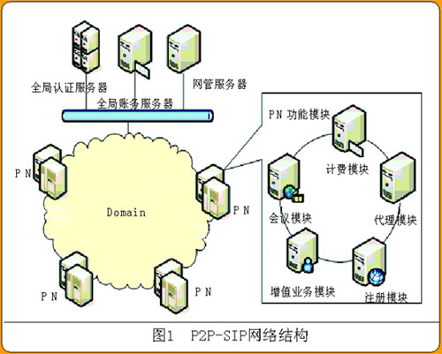 PN在地理上散布各處,邏輯上根據(jù)選用的P2P機制的不同可以是環(huán)形的(Chord協(xié)議)、矩陣的(CAN協(xié)議)、網(wǎng)狀的(Pastry協(xié)議和Tapestry協(xié)議);镜腜N至少包括注冊和代理兩種功能。為進(jìn)行商業(yè)運營,可以部署全局認(rèn)證服務(wù)器、全局賬務(wù)服務(wù)器和網(wǎng)管服務(wù)器等等,用于管理全部的用戶和所有的PN。