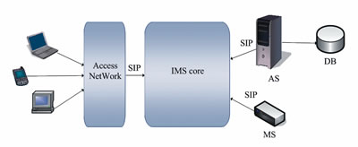 IMS網絡選擇SIP協(xié)議作為呼叫控制協(xié)議,選擇Diameter協(xié)議為運行AAA(認證、授權、計費)功能的協(xié)議,在網絡安全方面采用IPSec技術和TLS安全傳送協(xié)議。IMS體系結構包括應用層平面、控制層平面、媒體層平面3個部分。應用層包括了多種類型的應用服務器,這些主持和執(zhí)行服務的SIP實體,可操作在SIP代理模式、SIPUA模式和SIPB2BUA模式下。應用層為用戶提供多媒體業(yè)務,它獨立于網絡的接入層、核心控制層存在,能保證業(yè)務開發(fā)和提供的獨立性?刂茖犹幚頃捫帕,由不同的功能實體來處理信令流,x-CSCF(呼叫會話控制功能)、HSS(歸屬用戶服務器)、MGCF(媒體網關控制功能)、MRFC(媒體資源功能控制器)等實體協(xié)同操作,提供用戶的統(tǒng)一認證、呼叫控制、策略管理、漫游和計費等功能。媒體層作為一個媒體宣告服務器,直接在用戶之間、用戶和IMS媒體功能(如媒體資源控制處理器MRFP)之間傳輸媒體流。