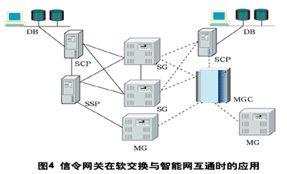 對(duì)現(xiàn)有的智能網(wǎng)來(lái)說(shuō),軟交換以及它所控制的節(jié)點(diǎn)構(gòu)成一個(gè)虛擬的SSP,可在INAP/CAP/TCAP/SCCP接口上通過(guò)信令網(wǎng)關(guān)與現(xiàn)有智能網(wǎng)中的SCP互通,共同提供智能網(wǎng)業(yè)務(wù),或者直接和IP