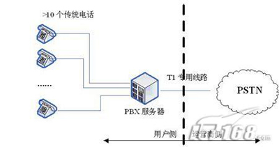相反,在傳統(tǒng)的PBX或新興的IP-PBX中,這些功能模塊通常配置在用戶側的網(wǎng)絡元素上,而且通過一條或多條專用線路T1(傳統(tǒng)PBX)或DSL(新興PBX)連接到中心辦公室,用PSTN的連接。圖1說明了PBX和Centrex服務的區(qū)別。而且,DSL還能在相同的鏈路支持語音和數(shù)據(jù)的傳輸,而且維護鏈路的成本也遠遠小于維護T1所需的代價。另外,由于呼叫控制能夠在本地裝載,而IP-PBX能夠支持Internet連接,因此每23(T1-PRI)或24(T1-CAS)個電話終端就不再需要一條專用線路T1的支持了。(后續(xù)將進一步說明)
