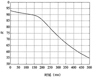 對(duì)實(shí)時(shí)的語音和視頻業(yè)務(wù)來說,業(yè)務(wù)數(shù)據(jù)端到端的時(shí)延最為關(guān)鍵,從仿真結(jié)果圖6和圖7可以看出時(shí)延對(duì)R系數(shù)和MOS值的影響:隨著時(shí)延的增加,R系數(shù)和MOS值都降低,即語音質(zhì)量變差。當(dāng)時(shí)延大于150ms時(shí),語音質(zhì)量下降的比較厲害。