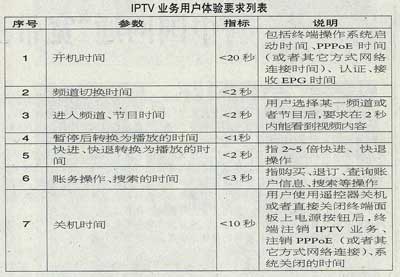 IPTV業(yè)務用戶體驗要求如下表所示。