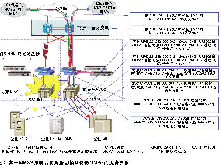 為驗證基于IP尋址的彩信網(wǎng)關(guān)備份方案的現(xiàn)網(wǎng)可行性,2006年12月6日在北京MMSG進(jìn)行了容災(zāi)備份的測試。當(dāng)時,北京MMSG1已經(jīng)割接入網(wǎng),承載空中網(wǎng)公司、Sina公司的業(yè)務(wù),北京MMSG2正在進(jìn)行測試,TOM公司進(jìn)行配合。