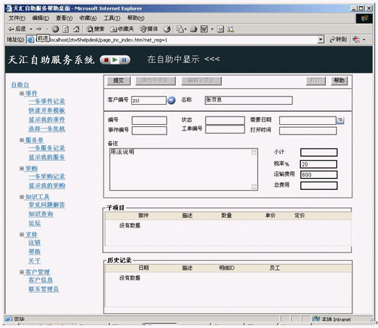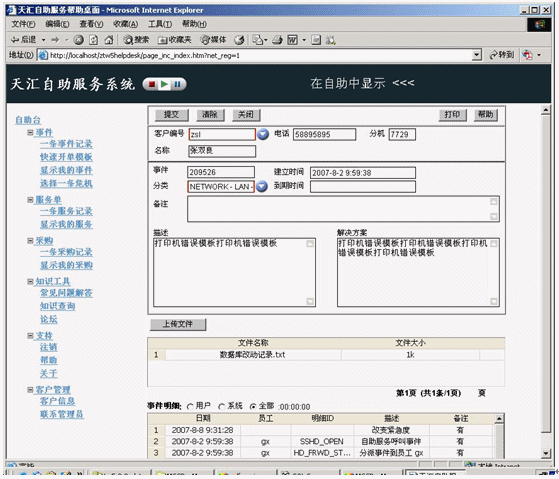 在天匯幫助臺(tái)系統(tǒng)中,通過其自助服務(wù)功能模塊進(jìn)行的新請(qǐng)求可以在服務(wù)臺(tái)系統(tǒng)中捕獲,并像其他所有請(qǐng)求一樣被分配一個(gè)事件編號(hào),以提供審核跟蹤和啟用后續(xù)的進(jìn)度監(jiān)視。當(dāng)自助服務(wù)允許請(qǐng)求者更改數(shù)據(jù)或密碼時(shí),與服務(wù)臺(tái)的這種聯(lián)系尤為重要。然后它可以確保自動(dòng)將自助服務(wù)包括在趨勢(shì)分析中。該數(shù)據(jù)的明確分析允許改進(jìn)服務(wù),并使趨勢(shì)分析盡可能全面。