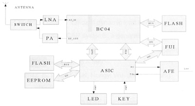 其中,BC04支持最大4個(gè)活動(dòng)連接(包括耳機(jī)),同時(shí)支持兩路SCO語音,所以語音通過PCM和ASIC PCM相接可以有多路被送到模擬端,從而實(shí)現(xiàn)3方通話。ASIC部分實(shí)現(xiàn)PCM語音數(shù)據(jù)與模擬語音信號的相互轉(zhuǎn)換,通過發(fā)送和接收PSTN信令,負(fù)責(zé)對人機(jī)界面的控制。它通過GPIO(General