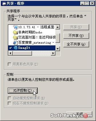 然后在客戶端Netmeeting中只須在其窗口出現(xiàn)的共享程序窗口中單擊“控制”/“請求控制權(quán)”并經(jīng)授權(quán)后即可以操控主機(jī)上的應(yīng)用程序了。