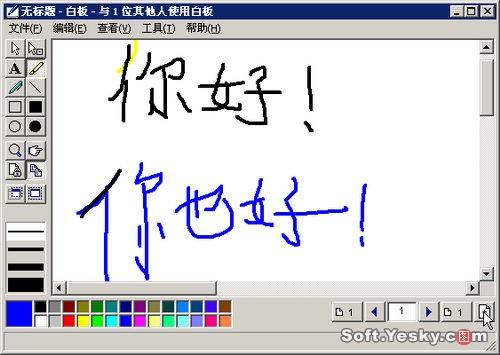 Netmeeting界面下方有四個按鈕,分別對應(yīng)了“共享”、“聊天”、“白板”和“傳送文件”四項(xiàng)主要功能(這四項(xiàng)功能需要在會議屬性中啟用,否則在會議中處于不可用狀態(tài))。