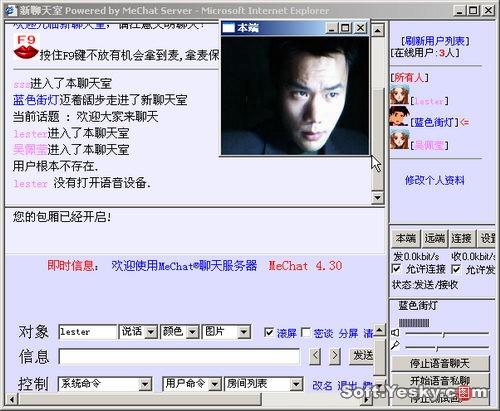 MeChat是由廣州和韻計(jì)算機(jī)有限公司開發(fā)的視頻聊天服務(wù)器。(點(diǎn)這里下載)與一般的采用ASP或CGI的語音聊天室不同,Mechat內(nèi)核由C